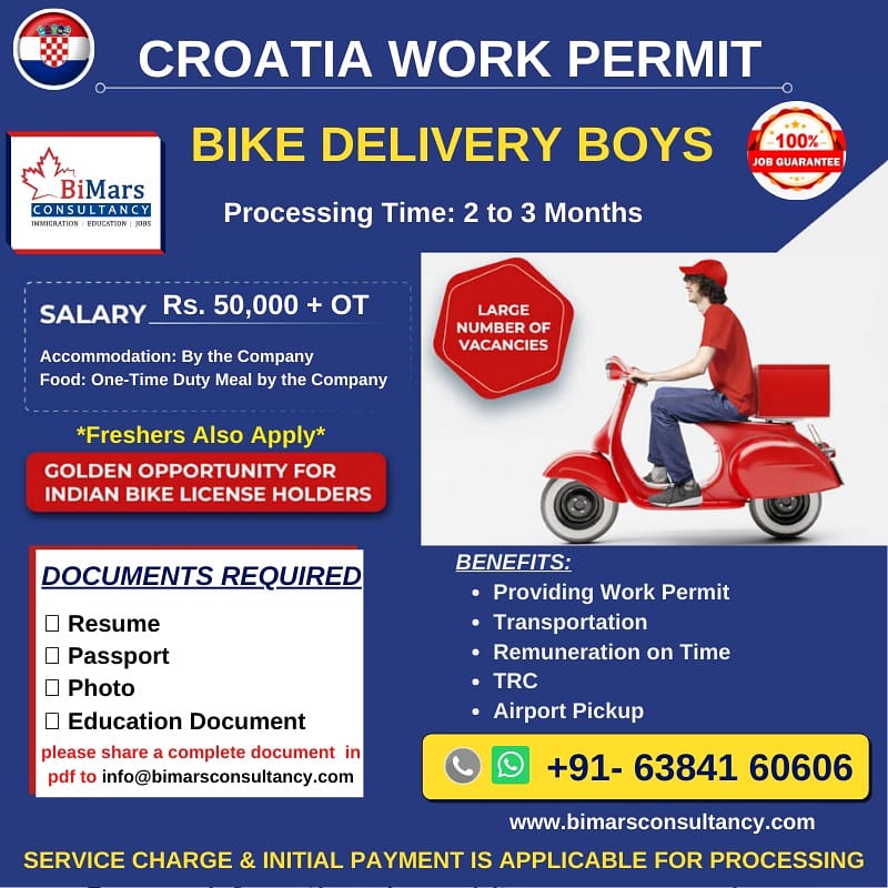 Bimars Consultancy On Twitter Exciting Job Opportunities At Croatia Work Permit In 2021 For Bike Delivery Boys For Details Amp Free Assessment Whatsapp Us Https T Co U012q1ivvx Or Call Us 91 6384160606